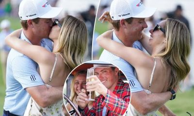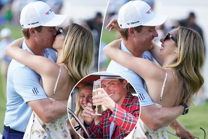 Sealed with a kiss — and a flute of bubbly. Ben Griffin celebrated his second-ever PGA Tour victory with fiancée Dana Myeroff on Sunday at...