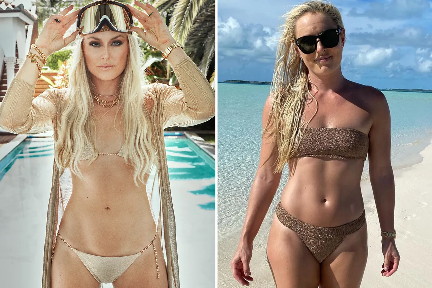 Olympic ski champ Lindsey Vonn stuns in gold bikini as she models her eyewear range